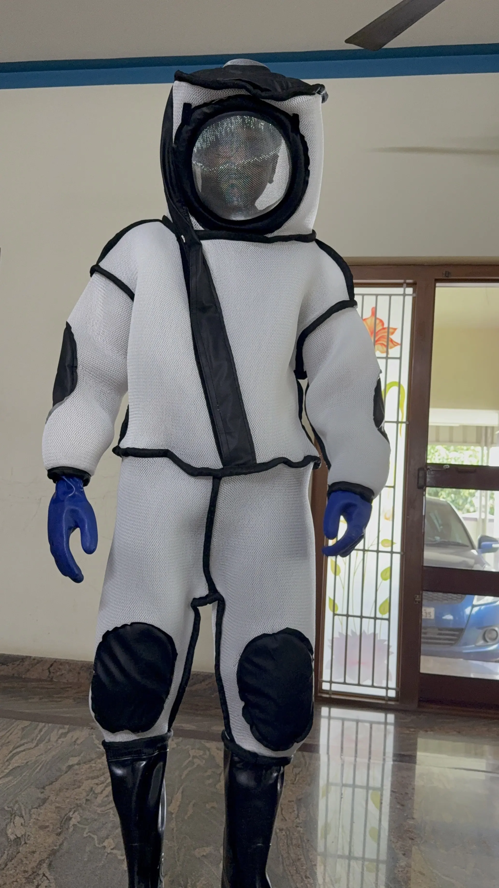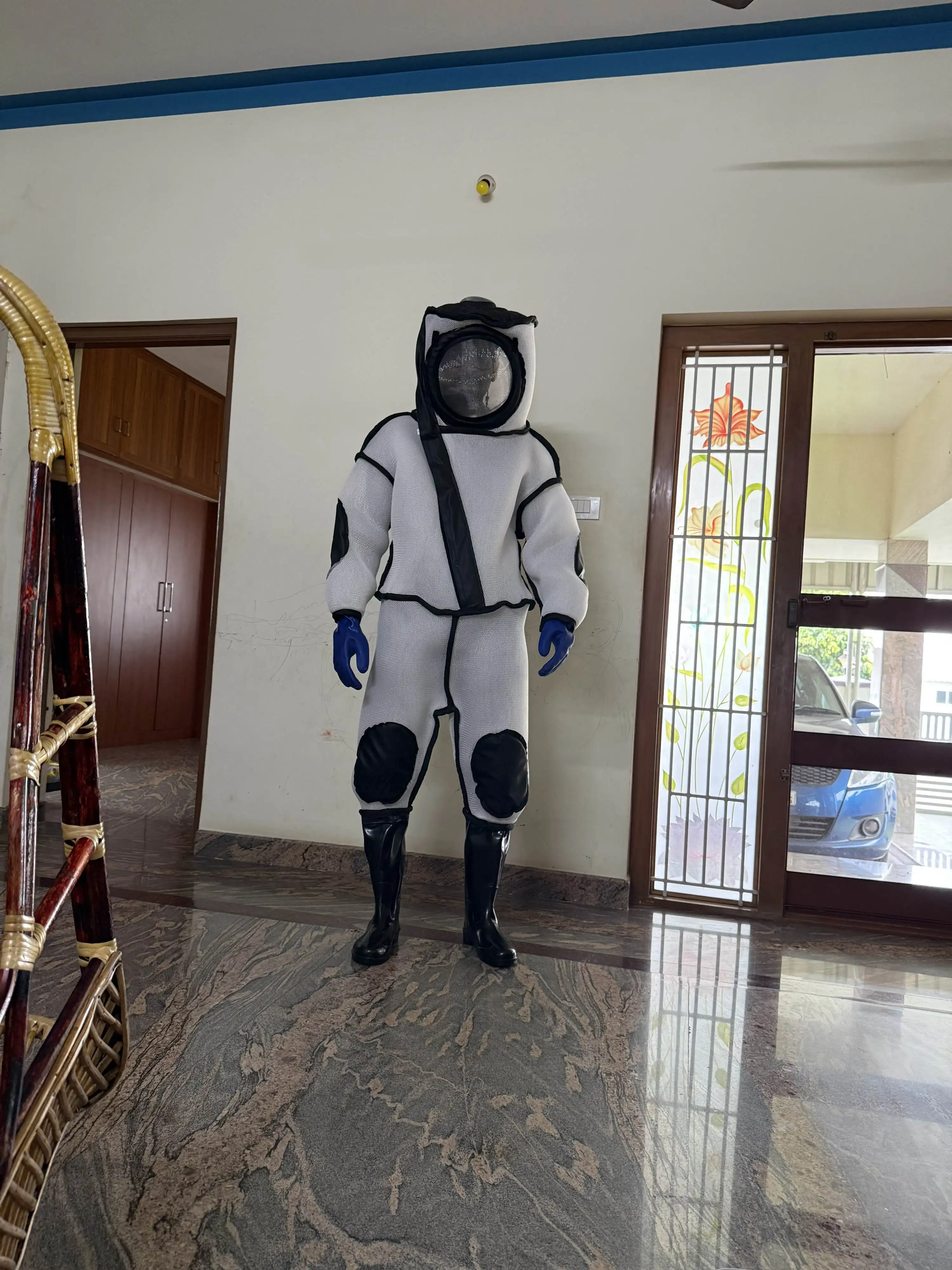 Traspirante, morbido, pugnalata-resistente Guanti, pvc Cotone e Fibra Chimica di Un pezzo Indumenti Apicoltura Tuta Anti-statica A Prova di Fuoco
